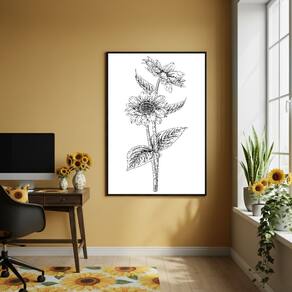 Quadro Girassol Desenho Fino - 70x50cm Mold Preta