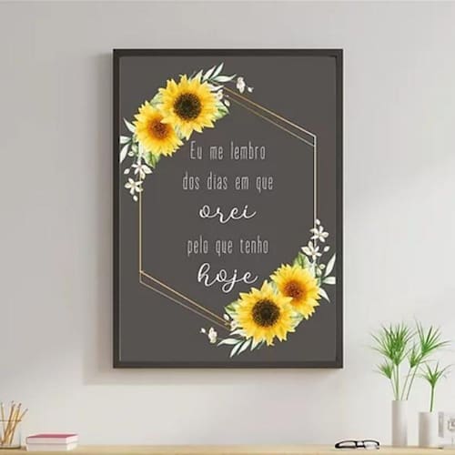 Quadro girassol dias em que orei 60x40cm Moldura: madeira preta