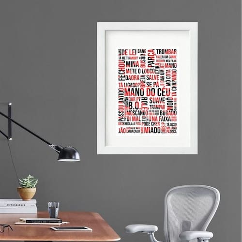 Quadro gírias - 60x48cm Moldura: madeira branca Informações do produto tire todas as suas dúvidas no descritivo abaixo: decoração para quarto, sala, cozinha, escritório, área gourmet e muito mais. Chega de paredes vazias medidas - cada peça tem 60x48cm . Material do papel - papel fotográfico brilhante de altíssima resolução acabamento - todos os quadros são acompanhados de vidro para proteção da imagem. - moldura em madeira maciça na cor preta ou branca conforme produto escolhido e pendurador. - paspatur branco com 7cm de largura - os quadros são embalados de forma segura com plástico bolha com camada dupla de acordo com o tamanho dos quadros. - de 3 meses. Meu quadro chegou. Como posso fixá-lo Você precisa apenas de um martelo e um prego, pois os quadros já vão acompanhados de penduradores. Esta é a forma mais indicada. Como posso limpar meu quadro A limpeza é feita como um móvel comum da sua casa. Apenas um pano seco ou espanador são suficientes para tal Marca: Não Informado