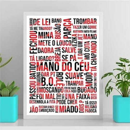 Quadro gírias de sp branco vermelho preto 45x34cm Moldura: madeira branca