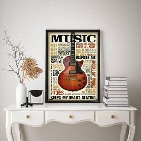 Quadro Guitarra Music Marrom 45x34cm - Madeira Branca