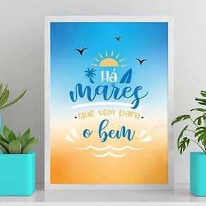 Quadro há mares que vem para o bem 33x24cm Moldura: madeira branca Informações do produto tire todas as suas dúvidas no descritivo abaixo: decoração para quarto, sala, cozinha, escritório, área gourmet e muito mais. Chega de paredes vazias medidas - cada peça tem 33x24cm a4 . Material do papel - papel fotográfico brilhante de altíssima resolução acabamento - todos os quadros são acompanhados de uma película de acetato para proteção da imagem. - os quadros são embalados de forma segura com plástico bolha com camada dupla de acordo com o tamanho dos quadros. Garantia - garantia de 3 meses. Meu quadro chegou. Como posso fixá-lo Você precisa apenas de um martelo e um prego, pois os quadros já vão acompanhados de penduradores. Esta é a forma mais indicada. Caso prefira, você pode utilizar uma fita dupla face neste caso, sugerimos de alta qualidade para evitar que descole e seu quadro caia . Como posso limpar meu quadro A limpeza é feita como um móvel comum da sua casa. Apenas um pano seco ou espanador são suficientes para tal