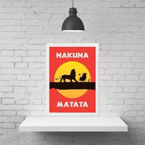 Quadro hakuna matata - filme rei leão 33x24cm Moldura: madeira preta Informações do produto tire todas as suas dúvidas no descritivo abaixo: decoração para quarto, sala, cozinha, escritório, área gourmet e muito mais. Chega de paredes vazias medidas - cada peça tem 33x24cm a4 . Material do papel - papel fotográfico brilhante de altíssima resolução acabamento - todos os quadros são acompanhados de uma película de acetato para proteção da imagem. - os quadros são embalados de forma segura com plástico bolha com camada dupla de acordo com o tamanho dos quadros. Garantia - garantia de 3 meses. Meu quadro chegou. Como posso fixá-lo Você precisa apenas de um martelo e um prego, pois os quadros já vão acompanhados de penduradores. Esta é a forma mais indicada. Caso prefira, você pode utilizar uma fita dupla face neste caso, sugerimos de alta qualidade para evitar que descole e seu quadro caia . Como posso limpar meu quadro A limpeza é feita como um móvel comum da sua casa. Apenas um pano seco ou espanador são suficientes para tal