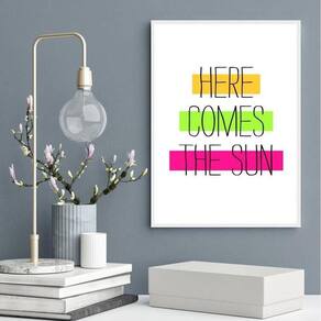 Quadro here comes the sun- colorido 33x24cm Moldura: madeira preta Informações do produto tire todas as suas dúvidas no descritivo abaixo: decoração para quarto, sala, cozinha, escritório, área gourmet e muito mais. Chega de paredes vazias medidas - cada peça tem 33x24cm a4 . Material do papel - papel fotográfico brilhante de altíssima resolução acabamento - todos os quadros são acompanhados de uma película de acetato para proteção da imagem. - os quadros são embalados de forma segura com plástico bolha com camada dupla de acordo com o tamanho dos quadros. Garantia - garantia de 3 meses. Meu quadro chegou. Como posso fixá-lo Você precisa apenas de um martelo e um prego, pois os quadros já vão acompanhados de penduradores. Esta é a forma mais indicada. Caso prefira, você pode utilizar uma fita dupla face neste caso, sugerimos de alta qualidade para evitar que descole e seu quadro caia . Como posso limpar meu quadro A limpeza é feita como um móvel comum da sua casa. Apenas um pano seco ou espanador são suficientes para tal
