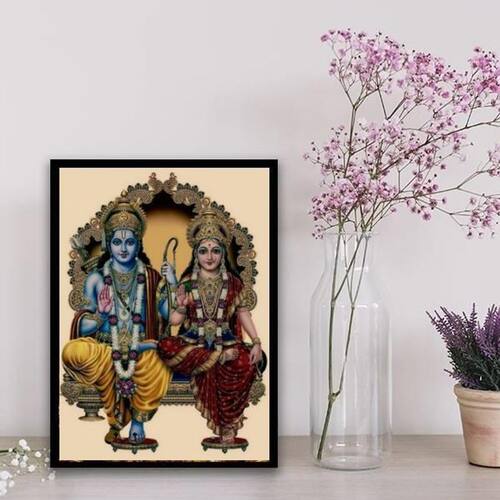 Quadro hindu jai siya ram 24x18cm - com vidro Moldura: madeira preta Informações do produto Decoração para quarto, sala, cozinha, escritório, área gourmet e muito mais. Chega de paredes vazias Medidas - cada peça tem 24x18cm a5 . Material do papel - papel fotográfico brilhante de altíssima resolução Acabamento - todos os quadros são acompanhados de vidro para proteção da imagem. - moldura em madeira maciça e pendurador. - os quadros são embalados de forma segura com plástico bolha com camada dupla de acordo com o tamanho dos quadros. - de 3 meses. Meu quadro chegou. Como posso fixá-lo Você precisa apenas de um martelo e um prego, pois os quadros já vão acompanhados de penduradores. Esta é a forma mais indicada. Caso prefira, você pode utilizar uma fita dupla face neste caso, sugerimos de alta qualidade para evitar que descole e seu quadro caia . Como posso limpar meu quadro A limpeza é feita como um móvel comum da sua casa. Apenas um pano seco ou espanador são suficientes para tal Marca: Não Informado Ean: 7896080157580