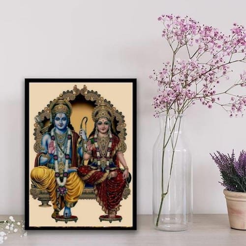 Quadro hindu jai siya ram 24x18cm Moldura: madeira preta