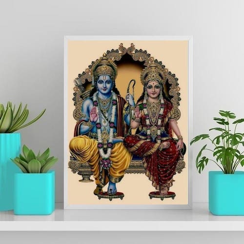 Quadro hindu jai siya ram 33x24cm Moldura: madeira preta