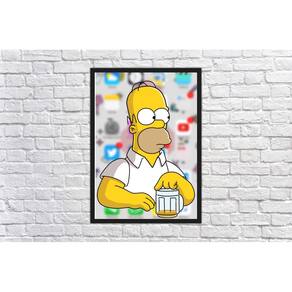 Quadro Homer Simpsons Cerveja Desenho Com Moldura G10