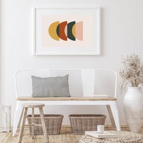 Quadro horizontal boho formas orgânicas - 60x48cm Moldura: madeira branca Informações do produto tire todas as suas dúvidas no descritivo abaixo: decoração para quarto, sala, cozinha, escritório, área gourmet e muito mais. Chega de paredes vazias medidas - cada peça tem 60x48cm . Material do papel - papel fotográfico brilhante de altíssima resolução acabamento - todos os quadros são acompanhados de vidro para proteção da imagem. - moldura em madeira maciça na cor preta ou branca conforme produto escolhido e pendurador. - paspatur branco com 7cm de largura - os quadros são embalados de forma segura com plástico bolha com camada dupla de acordo com o tamanho dos quadros. Garantia - garantia de 3 meses. Meu quadro chegou. Como posso fixá-lo Você precisa apenas de um martelo e um prego, pois os quadros já vão acompanhados de penduradores. Esta é a forma mais indicada. Como posso limpar meu quadro A limpeza é feita como um móvel comum da sua casa. Apenas um pano seco ou espanador são suficientes para tal