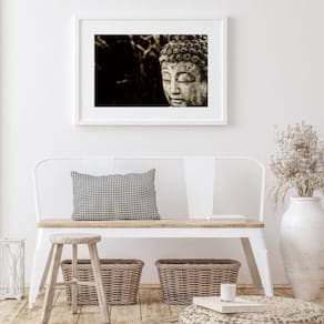 Quadro horizontal buda - 60x48cm Moldura: madeira preta Informações do produto tire todas as suas dúvidas no descritivo abaixo: decoração para quarto, sala, cozinha, escritório, área gourmet e muito mais. Chega de paredes vazias medidas - cada peça tem 60x48cm . Material do papel - papel fotográfico brilhante de altíssima resolução acabamento - todos os quadros são acompanhados de vidro para proteção da imagem. - moldura em madeira maciça na cor preta ou branca conforme produto escolhido e pendurador. - paspatur branco com 7cm de largura - os quadros são embalados de forma segura com plástico bolha com camada dupla de acordo com o tamanho dos quadros. Garantia - garantia de 3 meses. Meu quadro chegou. Como posso fixá-lo Você precisa apenas de um martelo e um prego, pois os quadros já vão acompanhados de penduradores. Esta é a forma mais indicada. Como posso limpar meu quadro A limpeza é feita como um móvel comum da sua casa. Apenas um pano seco ou espanador são suficientes para tal