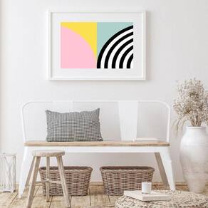 Quadro horizontal geométrico candy colors - 60x48cm Moldura: madeira preta Informações do produto tire todas as suas dúvidas no descritivo abaixo: decoração para quarto, sala, cozinha, escritório, área gourmet e muito mais. Chega de paredes vazias medidas - cada peça tem 60x48cm . Material do papel - papel fotográfico brilhante de altíssima resolução acabamento - todos os quadros são acompanhados de vidro para proteção da imagem. - moldura em madeira maciça na cor preta ou branca conforme produto escolhido e pendurador. - paspatur branco com 7cm de largura - os quadros são embalados de forma segura com plástico bolha com camada dupla de acordo com o tamanho dos quadros. Garantia - garantia de 3 meses. Meu quadro chegou. Como posso fixá-lo Você precisa apenas de um martelo e um prego, pois os quadros já vão acompanhados de penduradores. Esta é a forma mais indicada. Como posso limpar meu quadro A limpeza é feita como um móvel comum da sua casa. Apenas um pano seco ou espanador são suficientes para tal