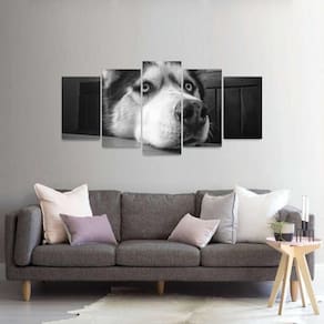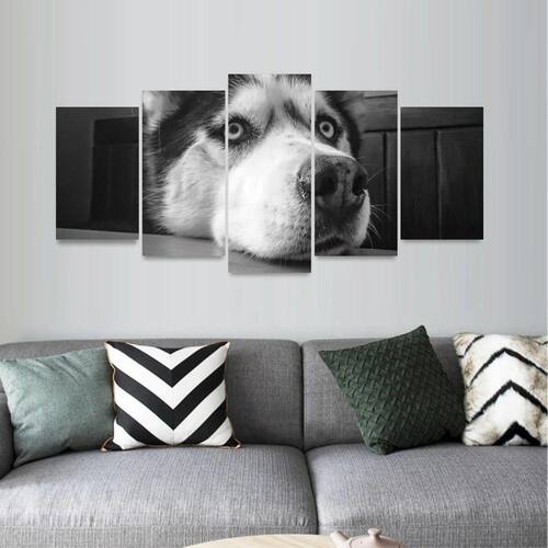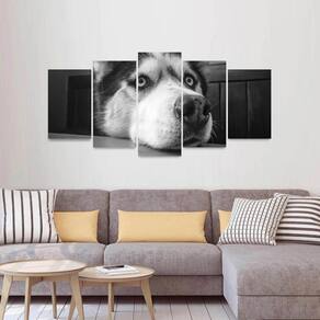 Quadro Husky Siberiano em Preto e Branco Mosaico 5 Peças