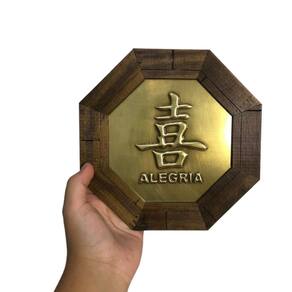 Quadro Ideograma Alegria Madeira Imbuia Oitavado 18 Cm
