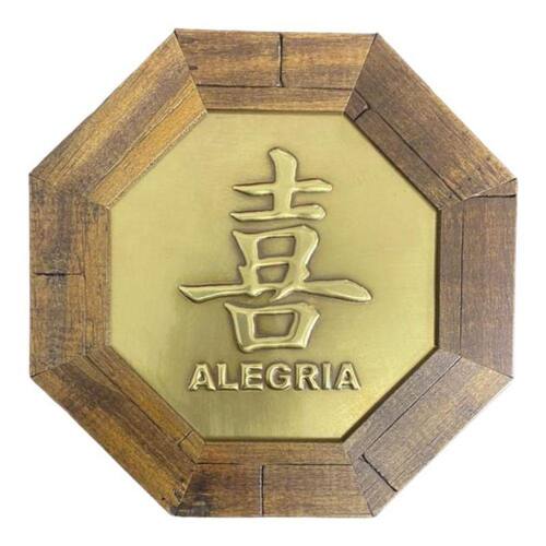 Quadro Ideograma Alegria Madeira Imbuia Oitavado 18 Cm
