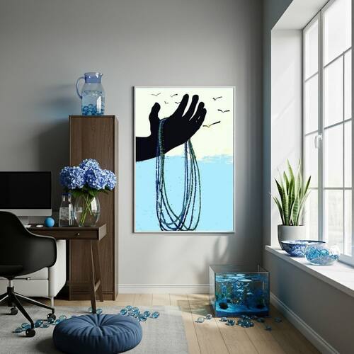 Quadro Iemanjá - Protetora das Águas Salgadas - 70x50cm - Cor: Moldura Branca