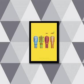Quadro Ilustração Beatles Amarelo 24X18Cm - Com Vidro