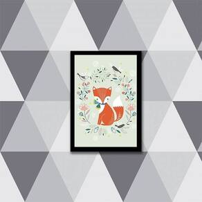 Quadro Ilustração Infantil Raposinha 45x34cm - com vidro - Moldura: Madeira branca