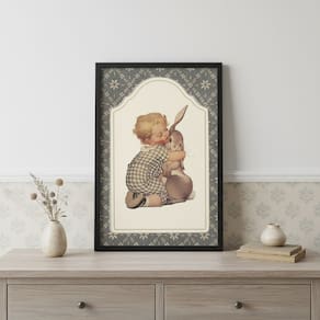 Quadro Infant Criança Coelhinho Vintage 24x18cm Mold Preta