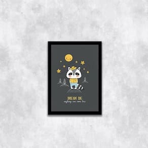 Quadro Infantil Bichinho Dream Big 24X18Cm Moldura: madeira preta