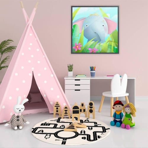Quadro Decorativo Infantil Elefante Medidas 40x40 Cm Tipo De Impressão Adesivo Fotográfico
