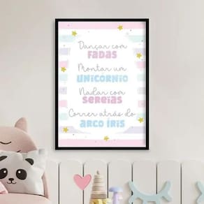 Quadro infantil fadas unicórnios sereia 24x18cm Cor: moldura branca Informações do produto tire todas as suas dúvidas no descritivo abaixo: decoração para quarto, sala, cozinha, escritório, área gourmet e muito mais. Chega de paredes vazias medidas - cada peça tem 24x18cm a5 . Material do papel - papel fotográfico brilhante de altíssima resolução acabamento - todos os quadros são acompanhados de uma película de acetato para proteção da imagem. - os quadros são embalados de forma segura com plástico bolha com camada dupla de acordo com o tamanho dos quadros. Garantia - garantia de 3 meses. Meu quadro chegou. Como posso fixá-lo Você precisa apenas de um martelo e um prego, pois os quadros já vão acompanhados de penduradores. Esta é a forma mais indicada. Caso prefira, você pode utilizar uma fita dupla face neste caso, sugerimos de alta qualidade para evitar que descole e seu quadro caia . Como posso limpar meu quadro A limpeza é feita como um móvel comum da sua casa. Apenas um pano seco ou espanador são suficientes para tal