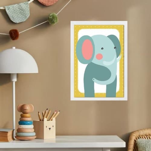 Quadro infantil safari - elefantinho 24x18cm - com vidro Cor: moldura preta Informações do produto tire todas as suas dúvidas no descritivo abaixo: decoração para quarto, sala, cozinha, escritório, área gourmet e muito mais. Chega de paredes vazias medidas - cada peça tem 24x18cm a5 . Material do papel - papel fotográfico brilhante de altíssima resolução acabamento - todos os quadros são acompanhados de vidro para proteção da imagem. - moldura em madeira maciça na cor preta ou branca conforme produto escolhido e pendurador . - os quadros são embalados de forma segura com plástico bolha com camada dupla de acordo com o tamanho dos quadros. - de 3 meses. Meu quadro chegou. Como posso fixá-lo Você precisa apenas de um martelo e um prego, pois os quadros já vão acompanhados de penduradores. Esta é a forma mais indicada. Como posso limpar meu quadro A limpeza é feita como um móvel comum da sua casa. Apenas um pano seco ou espanador são suficientes para tal Ean: 7895124638306