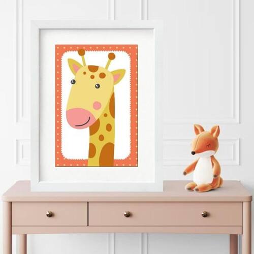 Quadro infantil safari girafinha- 60x48cm Cor: moldura branca Informações do produto tire todas as suas dúvidas no descritivo abaixo: decoração para quarto, sala, cozinha, escritório, área gourmet e muito mais. Chega de paredes vazias medidas - cada peça tem 60x48cm . Material do papel - papel fotográfico brilhante de altíssima resolução acabamento - todos os quadros são acompanhados de vidro para proteção da imagem. - moldura em madeira maciça na cor preta ou branca conforme produto escolhido e pendurador. - paspatur branco com 7cm de largura - os quadros são embalados de forma segura com plástico bolha com camada dupla de acordo com o tamanho dos quadros. - de 3 meses. Meu quadro chegou. Como posso fixá-lo Você precisa apenas de um martelo e um prego, pois os quadros já vão acompanhados de penduradores. Esta é a forma mais indicada. Como posso limpar meu quadro A limpeza é feita como um móvel comum da sua casa. Apenas um pano seco ou espanador são suficientes para tal Marca: Não Informado