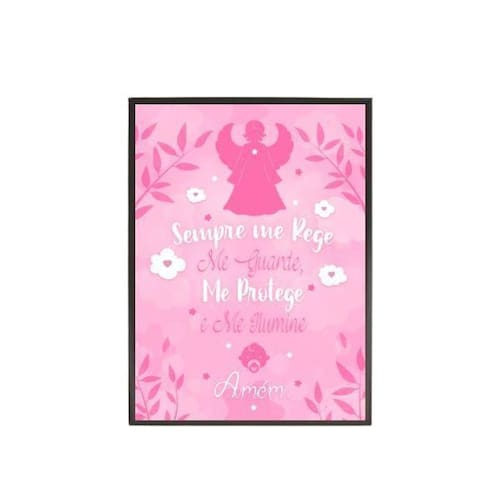 Quadro infantil sempre me rege rosa 33x24cm - com vidro Moldura: madeira preta Informações do produto Decoração para quarto, sala, cozinha, escritório, área gourmet e muito mais. Chega de paredes vazias medidas - cada peça tem 33x24cm a4 . Material do papel - papel fotográfico brilhante de altíssima resolução Acabamento - todos os quadros são acompanhados de vidro para proteção da imagem. - Moldura em madeira maciça na cor preta e pendurador . - Os quadros são embalados de forma segura com plástico bolha com camada dupla de acordo com o tamanho dos quadros. - de 3 meses. Meu quadro chegou. Como posso fixá-lo Você precisa apenas de um martelo e um prego, pois os quadros já vão acompanhados de penduradores. Esta é a forma mais indicada. Como posso limpar meu quadro A limpeza é feita como um móvel comum da sua casa. Apenas um pano seco ou espanador são suficientes para tal Ean: 7895142206846