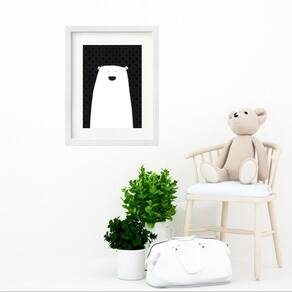 Quadro Infantil Urso Branco E Preto - 60x48cm - Moldura: Madeira branca