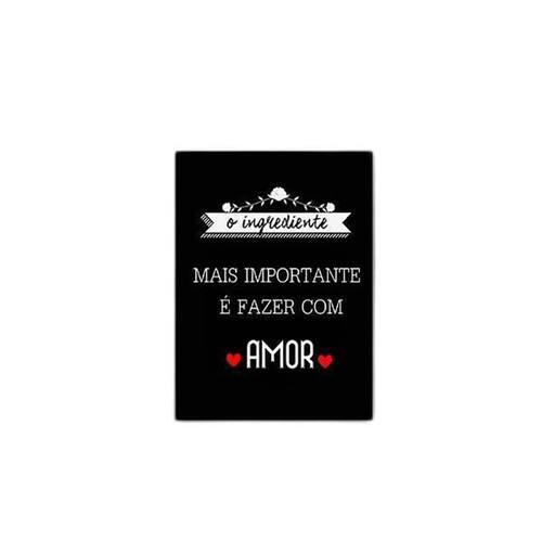 Quadro ingrediente mais importante é o amor 33x24cm - com vidro Moldura: madeira preta Informações do produto tire todas as suas dúvidas no descritivo abaixo: decoração para quarto, sala, cozinha, escritório, área gourmet e muito mais. Chega de paredes vazias medidas - cada peça tem 33x24cm a4 . Material do papel - papel fotográfico brilhante de altíssima resolução acabamento - todos os quadros são acompanhados de vidro para proteção da imagem. - moldura em madeira maciça na cor preta e pendurador . - os quadros são embalados de forma segura com plástico bolha com camada dupla de acordo com o tamanho dos quadros. - de 3 meses. Meu quadro chegou. Como posso fixá-lo Você precisa apenas de um martelo e um prego, pois os quadros já vão acompanhados de penduradores. Esta é a forma mais indicada. Como posso limpar meu quadro A limpeza é feita como um móvel comum da sua casa. Apenas um pano seco ou espanador são suficientes para tal Marca: Não Informado