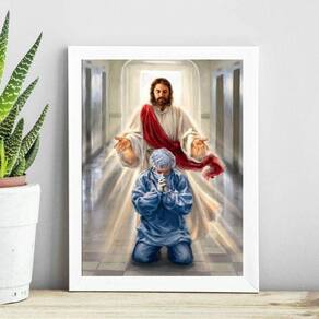 Quadro jesus abençoando médico 24x18cm - com vidro Moldura: madeira preta Informações do produto tire todas as suas dúvidas no descritivo abaixo: decoração para quarto, sala, cozinha, escritório, área gourmet e muito mais. Chega de paredes vazias medidas - cada peça tem 24x18cm a5 . Material do papel - papel fotográfico brilhante de altíssima resolução acabamento - todos os quadros são acompanhados de vidro para proteção da imagem. - moldura em madeira maciça na cor preta ou branca conforme produto escolhido e pendurador . - os quadros são embalados de forma segura com plástico bolha com camada dupla de acordo com o tamanho dos quadros. Garantia - garantia de 3 meses. Meu quadro chegou. Como posso fixá-lo Você precisa apenas de um martelo e um prego, pois os quadros já vão acompanhados de penduradores. Esta é a forma mais indicada. Como posso limpar meu quadro A limpeza é feita como um móvel comum da sua casa. Apenas um pano seco ou espanador são suficientes para tal