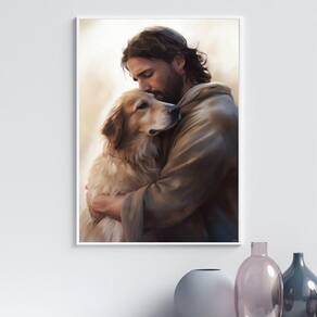 Quadro jesus abraçando cão golden retriever 33x24cm Moldura: madeira preta Informações do produto tire todas as suas dúvidas no descritivo abaixo: decoração para quarto, sala, cozinha, escritório, área gourmet e muito mais. Chega de paredes vazias medidas - cada peça tem 33x24cm a4 . Material do papel - papel fotográfico brilhante de altíssima resolução acabamento - todos os quadros são acompanhados de uma película de acetato para proteção da imagem. - os quadros são embalados de forma segura com plástico bolha com camada dupla de acordo com o tamanho dos quadros. Garantia - garantia de 3 meses. Meu quadro chegou. Como posso fixá-lo Você precisa apenas de um martelo e um prego, pois os quadros já vão acompanhados de penduradores. Esta é a forma mais indicada. Caso prefira, você pode utilizar uma fita dupla face neste caso, sugerimos de alta qualidade para evitar que descole e seu quadro caia . Como posso limpar meu quadro A limpeza é feita como um móvel comum da sua casa. Apenas um pano seco ou espanador são suficientes para tal Ean: 7893082590797