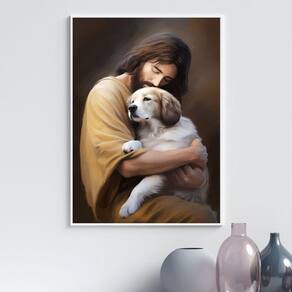 Quadro jesus beijando cachorrinho 45x34cm Moldura: madeira preta Informações do produto tire todas as suas dúvidas no descritivo abaixo: decoração para quarto, sala, cozinha, escritório, área gourmet e muito mais. Chega de paredes vazias. Medidas - cada peça tem 45x34cm a3 . Material do papel - papel fotográfico brilhante de altíssima resolução acabamento - todos os quadros são acompanhados de uma película de acetato para proteção da imagem. - os quadros são embalados de forma segura com plástico bolha com camada dupla de acordo com o tamanho dos quadros. Garantia - garantia de 3 meses. Meu quadro chegou. Como posso fixá-lo Você precisa apenas de um martelo e um prego, pois os quadros já vão acompanhados de penduradores. Esta é a forma mais indicada. Caso prefira, você pode utilizar uma fita dupla face neste caso, sugerimos de alta qualidade para evitar que descole e seu quadro caia . Como posso limpar meu quadro A limpeza é feita como um móvel comum da sua casa. Apenas um pano seco ou espanador são suficientes para tal