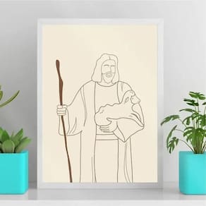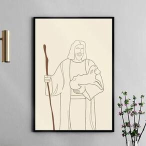Quadro Jesus Com Cajado - One Line 45X34Cm - Com Vidro