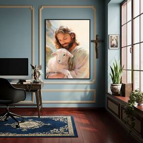 Quadro Jesus Cristo Companheiro dos Animais - 70x50cm - Cor: Moldura Preta