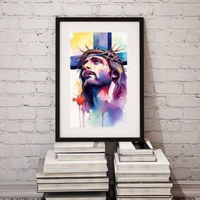 Quadro jesus cruz aquarela- 60x48cm Moldura: madeira preta Informações do produto tire todas as suas dúvidas no descritivo abaixo: decoração para quarto, sala, cozinha, escritório, área gourmet e muito mais. Chega de paredes vazias medidas - cada peça tem 60x48cm . Material do papel - papel fotográfico brilhante de altíssima resolução acabamento - todos os quadros são acompanhados de vidro para proteção da imagem. - moldura em madeira maciça na cor preta ou branca conforme produto escolhido e pendurador. - paspatur branco com 7cm de largura - os quadros são embalados de forma segura com plástico bolha com camada dupla de acordo com o tamanho dos quadros. Garantia - garantia de 3 meses. Meu quadro chegou. Como posso fixá-lo Você precisa apenas de um martelo e um prego, pois os quadros já vão acompanhados de penduradores. Esta é a forma mais indicada. Como posso limpar meu quadro A limpeza é feita como um móvel comum da sua casa. Apenas um pano seco ou espanador são suficientes para tal