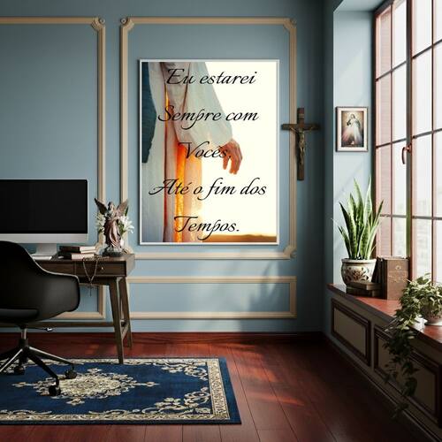 Quadro Jesus Estarei com Vocês Até o Fim dos Tempos -70x50cm - Cor: Moldura Preta