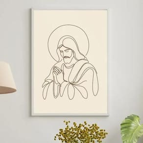 Quadro jesus one line - marrom 24x18cm Cor: moldura preta Informações do produto tire todas as suas dúvidas no descritivo abaixo: decoração para quarto, sala, cozinha, escritório, área gourmet e muito mais. Chega de paredes vazias medidas - cada peça tem 24x18cm a5 . Material do papel - papel fotográfico brilhante de altíssima resolução acabamento - todos os quadros são acompanhados de uma película de acetato para proteção da imagem. - os quadros são embalados de forma segura com plástico bolha com camada dupla de acordo com o tamanho dos quadros. - de 3 meses. Meu quadro chegou. Como posso fixá-lo Você precisa apenas de um martelo e um prego, pois os quadros já vão acompanhados de penduradores. Esta é a forma mais indicada. Caso prefira, você pode utilizar uma fita dupla face neste caso, sugerimos de alta qualidade para evitar que descole e seu quadro caia . Como posso limpar meu quadro A limpeza é feita como um móvel comum da sua casa. Apenas um pano seco ou espanador são suficientes para tal