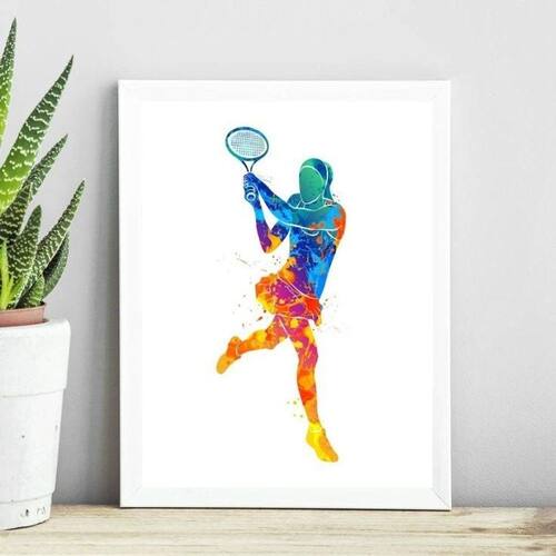 Quadro jogadora de tênis aquarela 33x24cm - com vidro Moldura: madeira branca Informações do produto tire todas as suas dúvidas no descritivo abaixo: decoração para quarto, sala, cozinha, escritório, área gourmet e muito mais. Chega de paredes vazias medidas - cada peça tem 33x24cm a4 . Material do papel - papel fotográfico brilhante de altíssima resolução acabamento - todos os quadros são acompanhados de vidro para proteção da imagem. - moldura em madeira maciça na cor preta ou branca conforme produto escolhido e pendurador . - os quadros são embalados de forma segura com plástico bolha com camada dupla de acordo com o tamanho dos quadros. Garantia - garantia de 3 meses. Meu quadro chegou. Como posso fixá-lo Você precisa apenas de um martelo e um prego, pois os quadros já vão acompanhados de penduradores. Esta é a forma mais indicada. Como posso limpar meu quadro A limpeza é feita como um móvel comum da sua casa. Apenas um pano seco ou espanador são suficientes para tal