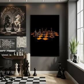 Quadro Jogo De Xadrez 70x50cm Mold Preta
