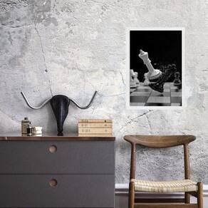 Quadro jogo xadrez-preto e branco 45x34cm - com vidro Moldura: madeira branca Informações do produto tire todas as suas dúvidas no descritivo abaixo: decoração para quarto, sala, cozinha, escritório, área gourmet e muito mais. Chega de paredes vazias medidas - cada peça tem 45x34cm a3 . Material do papel - papel fotográfico brilhante de altíssima resolução acabamento - todos os quadros são acompanhados de vidro para proteção da imagem. - moldura em madeira maciça na cor preta ou branca conforme produto escolhido e pendurador . - os quadros são embalados de forma segura com plástico bolha com camada dupla de acordo com o tamanho dos quadros. Garantia - garantia de 3 meses. Meu quadro chegou. Como posso fixá-lo Você precisa apenas de um martelo e um prego, pois os quadros já vão acompanhados de penduradores. Esta é a forma mais indicada. Como posso limpar meu quadro A limpeza é feita como um móvel comum da sua casa. Apenas um pano seco ou espanador são suficientes para tal Homologação Inmetro: CE-BRI/ICEPEX-N 01264-25-3