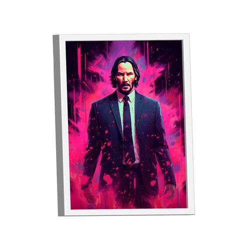 Quadro John Wick Purple -- BR ARTES Moldura Branca - Médio 84x54 -