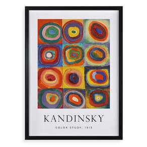 Quadro kandinsky - color study 33x24cm - com vidro Cor: moldura branca Informações do produto tire todas as suas dúvidas no descritivo abaixo: decoração para quarto, sala, cozinha, escritório, área gourmet e muito mais. Chega de paredes vazias medidas - cada peça tem 33x24cm a4 . Material do papel - papel fotográfico brilhante de altíssima resolução acabamento - todos os quadros são acompanhados de vidro para proteção da imagem. - moldura em madeira maciça na cor preta ou branca conforme produto escolhido e pendurador . - os quadros são embalados de forma segura com plástico bolha com camada dupla de acordo com o tamanho dos quadros. - de 3 meses. Meu quadro chegou. Como posso fixá-lo Você precisa apenas de um martelo e um prego, pois os quadros já vão acompanhados de penduradores. Esta é a forma mais indicada. Como posso limpar meu quadro A limpeza é feita como um móvel comum da sua casa. Apenas um pano seco ou espanador são suficientes para tal