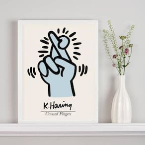 Quadro keith haring crossed fingers - azul 24x18cm Moldura: madeira preta Informações do produto tire todas as suas dúvidas no descritivo abaixo: decoração para quarto, sala, cozinha, escritório, área gourmet e muito mais. Chega de paredes vazias medidas - cada peça tem 24x18cm a5 . Material do papel - papel fotográfico brilhante de altíssima resolução acabamento - todos os quadros são acompanhados de uma película de acetato para proteção da imagem. - os quadros são embalados de forma segura com plástico bolha com camada dupla de acordo com o tamanho dos quadros. Garantia - garantia de 3 meses. Meu quadro chegou. Como posso fixá-lo Você precisa apenas de um martelo e um prego, pois os quadros já vão acompanhados de penduradores. Esta é a forma mais indicada. Caso prefira, você pode utilizar uma fita dupla face neste caso, sugerimos de alta qualidade para evitar que descole e seu quadro caia . Como posso limpar meu quadro A limpeza é feita como um móvel comum da sua casa. Apenas um pano seco ou espanador são suficientes para tal