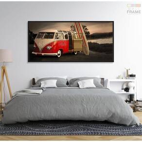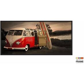 Quadro Kombi Vermelha Vintage Retrô Surf Praia 130x60 Moldura Preta 2x2