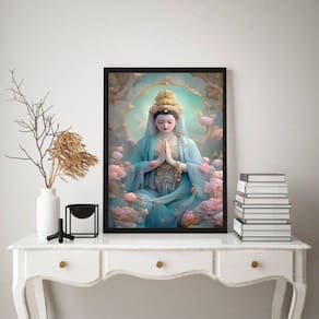 Quadro Kuan Yin 33x24cm com Vidro - Moldura Preta