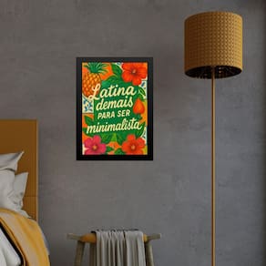 Quadro latina demais para ser minimalista 33x24cm - com vidro Cor: moldura preta Informações do produto tire todas as suas dúvidas no descritivo abaixo: decoração para quarto, sala, cozinha, escritório, área gourmet e muito mais. Chega de paredes vazias medidas - cada peça tem 33x24cm a4 . Material do papel - papel fotográfico brilhante de altíssima resolução acabamento - todos os quadros são acompanhados de vidro para proteção da imagem. - moldura em madeira maciça na cor preta ou branca conforme produto escolhido e pendurador . - os quadros são embalados de forma segura com plástico bolha com camada dupla de acordo com o tamanho dos quadros. - de 3 meses. Meu quadro chegou. Como posso fixá-lo Você precisa apenas de um martelo e um prego, pois os quadros já vão acompanhados de penduradores. Esta é a forma mais indicada. Como posso limpar meu quadro A limpeza é feita como um móvel comum da sua casa. Apenas um pano seco ou espanador são suficientes para tal Marca: Não Informado