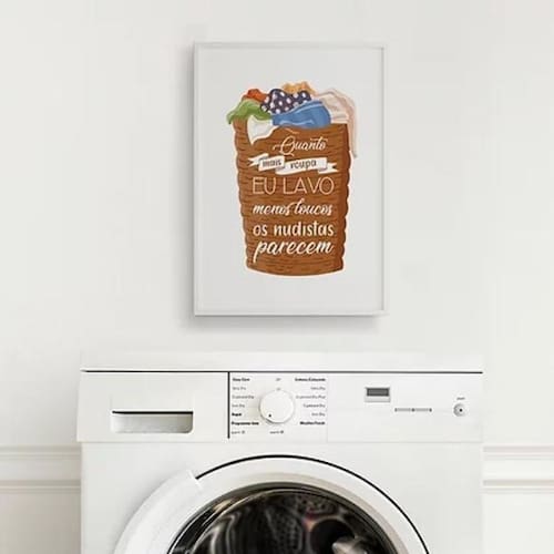 Quadro para lavanderia com frase engraçada 45x34cm - com vidro Moldura: madeira branca