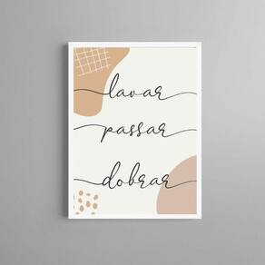 Quadro lavanderia - lavar passar dobrar 24x18cm - com vidro Cor: moldura branca Informações do produto tire todas as suas dúvidas no descritivo abaixo: decoração para quarto, sala, cozinha, escritório, área gourmet e muito mais. Chega de paredes vazias medidas - cada peça tem 24x18cm a5 . Material do papel - papel fotográfico brilhante de altíssima resolução acabamento - todos os quadros são acompanhados de vidro para proteção da imagem. - moldura em madeira maciça na cor preta ou branca conforme produto escolhido e pendurador . - os quadros são embalados de forma segura com plástico bolha com camada dupla de acordo com o tamanho dos quadros. - de 3 meses. Meu quadro chegou. Como posso fixá-lo Você precisa apenas de um martelo e um prego, pois os quadros já vão acompanhados de penduradores. Esta é a forma mais indicada. Como posso limpar meu quadro A limpeza é feita como um móvel comum da sua casa. Apenas um pano seco ou espanador são suficientes para tal Ean: 7891234541307