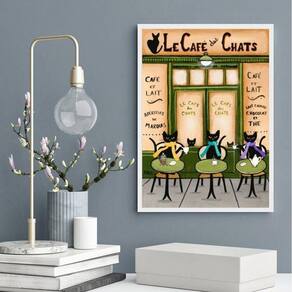 Quadro le café des chats 45x34cm - com vidro Moldura: madeira preta Informações do produto tire todas as suas dúvidas no descritivo abaixo: decoração para quarto, sala, cozinha, escritório, área gourmet e muito mais. Chega de paredes vazias medidas - cada peça tem 45x34cm a3 . Material do papel - papel fotográfico brilhante de altíssima resolução acabamento - todos os quadros são acompanhados de vidro para proteção da imagem. - moldura em madeira maciça na cor preta ou branca conforme produto escolhido e pendurador . - os quadros são embalados de forma segura com plástico bolha com camada dupla de acordo com o tamanho dos quadros. Garantia - garantia de 3 meses. Meu quadro chegou. Como posso fixá-lo Você precisa apenas de um martelo e um prego, pois os quadros já vão acompanhados de penduradores. Esta é a forma mais indicada. Como posso limpar meu quadro A limpeza é feita como um móvel comum da sua casa. Apenas um pano seco ou espanador são suficientes para tal